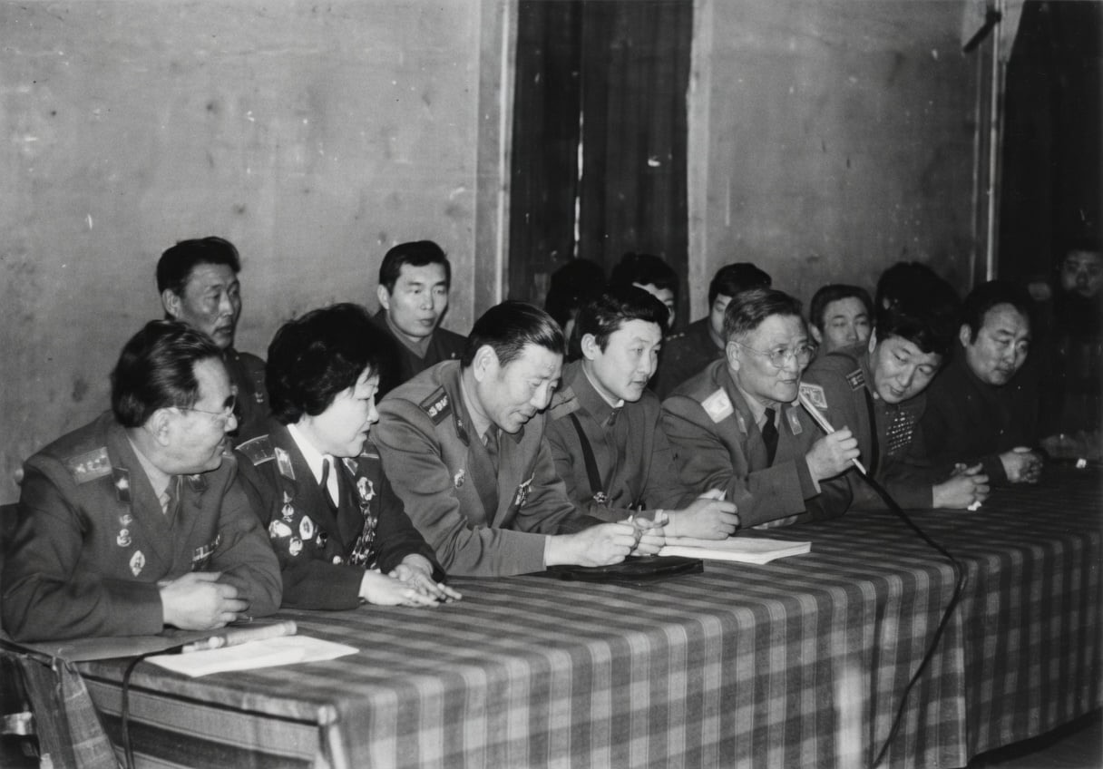 Миний архивт байгаа ховор зураг. Гавьяат Лхасүрэн гуай наад үзүүрт сууж байна. Арын эгнээнд дэслэгч би, дэд хурандаа Лувсан. Голд буй генерал бол “майга” хочит Цэрэндорж, Лхасүрэн гуайн цаана гавьяат дуучин Тунгалаг,хурандаа Баатар, ахмад Доржсэмбэ, генералын цаана хошууч Төмөрбаатар, хошууч Рэнцэнсамбуу. Бид Зүүнбаянд 1982 онд.