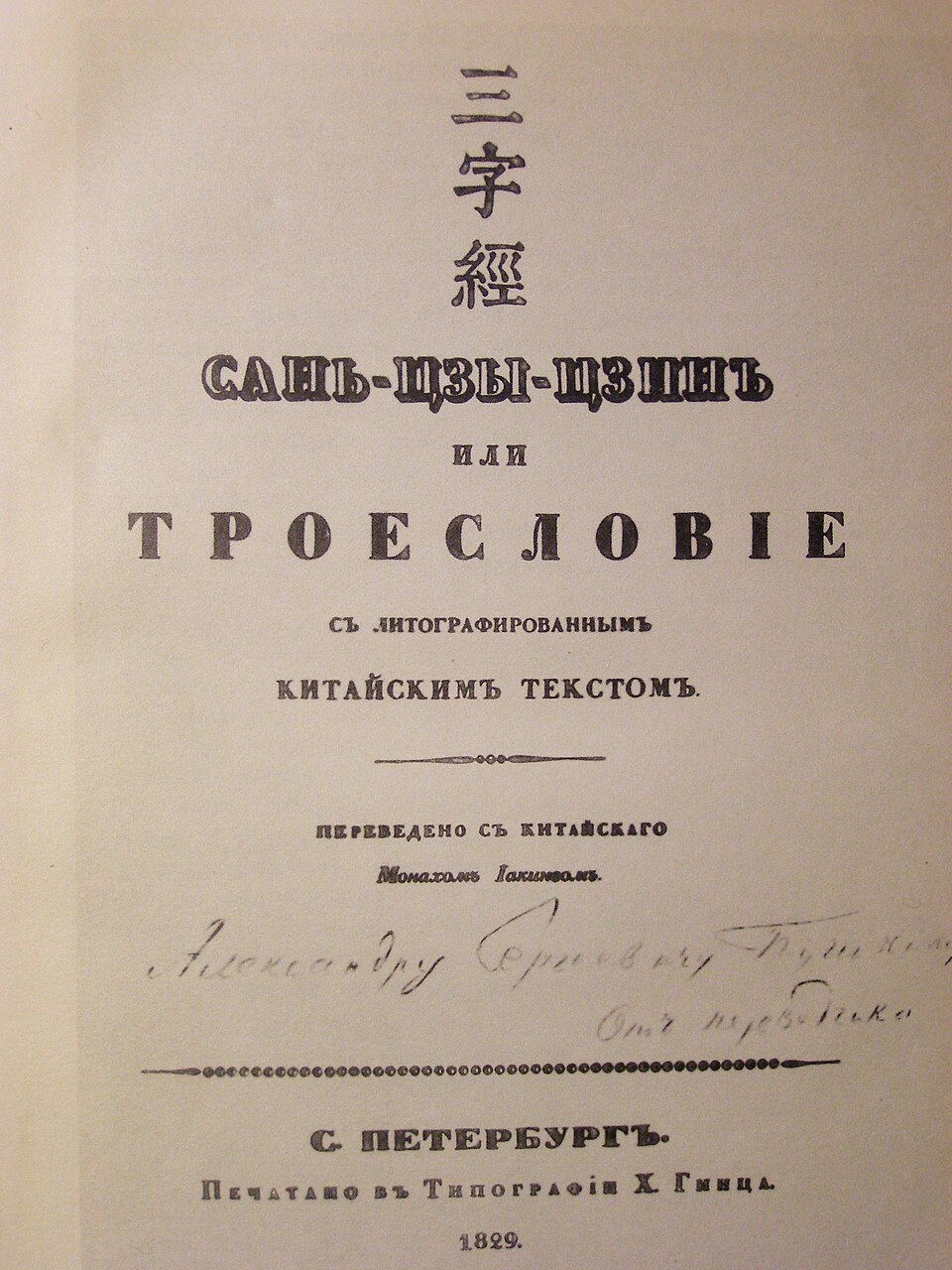 Хятадын “Дөрвөн бичиг” тэргүүтэй олон сонгодог судрыг орос хэлнээ анх орчуулсан Бичурин хятад хэлний нэр томьёог гадаад хэлэнд харгуулан буулгахдаа тайлбар хийлгүйгээр оноож буулгах аргачлалыг анх ашиглаж боловсруулсан юм.