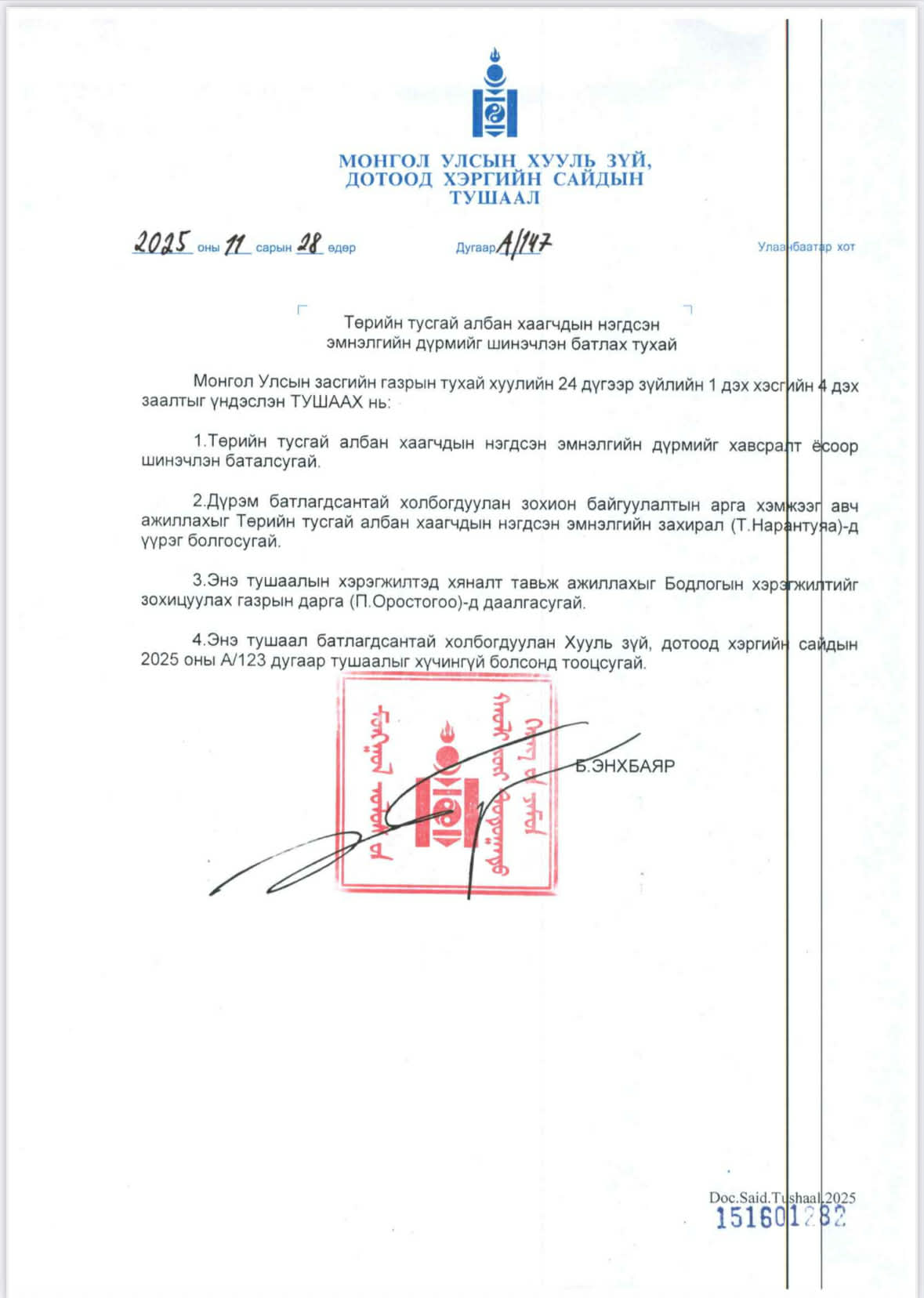 Ёс зүйн ДЕЛО: ХЗДХ-ийн хошой сайд Б.Энхбаяр төрийн тусгай албадыг самарч эхэллээ