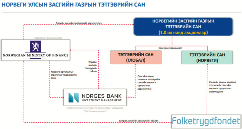 Байгалийн баялгийн орлогыг харьцангуй ижил тэгш хуваарилахын тулд байгалийн баялгийн сан байгуулж, тэр сангийн удирдлага, үйл ажиллагаа нь Норвегийн баялгийн сангийн жишгээр харьцангуй бие даасан, Засгийн газраас аль болох хараат бус байх тусмаа улс төрийн нөлөөллөөс ангид, үр өгөөж нь өндөр байх магадлалтай юм.