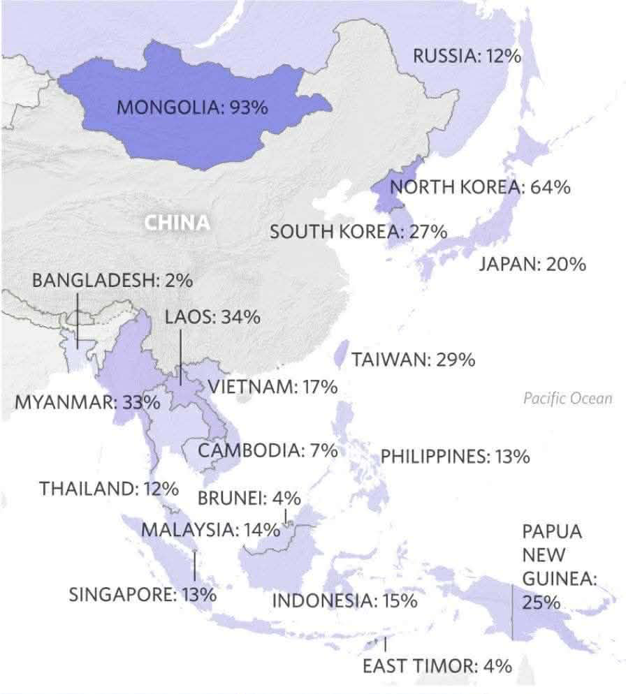 Өөр нэг зураг сонирхуулъя. Хятадын хамааралтай бол шууд бусаар дам холбогдоно. Азидаа ардчиллын баян бүрд болж, хос шилжилтийг (улс төр ба эдийн засаг) цус урсгалгүй хийсэн гэх яруу алдар маань даян дэлхийд алсраад алга болох дөхжээ. Рейтингийн энэ үнэлгээ тэгж л хэлээд байх шиг. Ардчилсан улс мөн нь мөн, гэхдээ авилгатай, дээр нь данхар том төртэй гэж үзсэн юм болов уу.