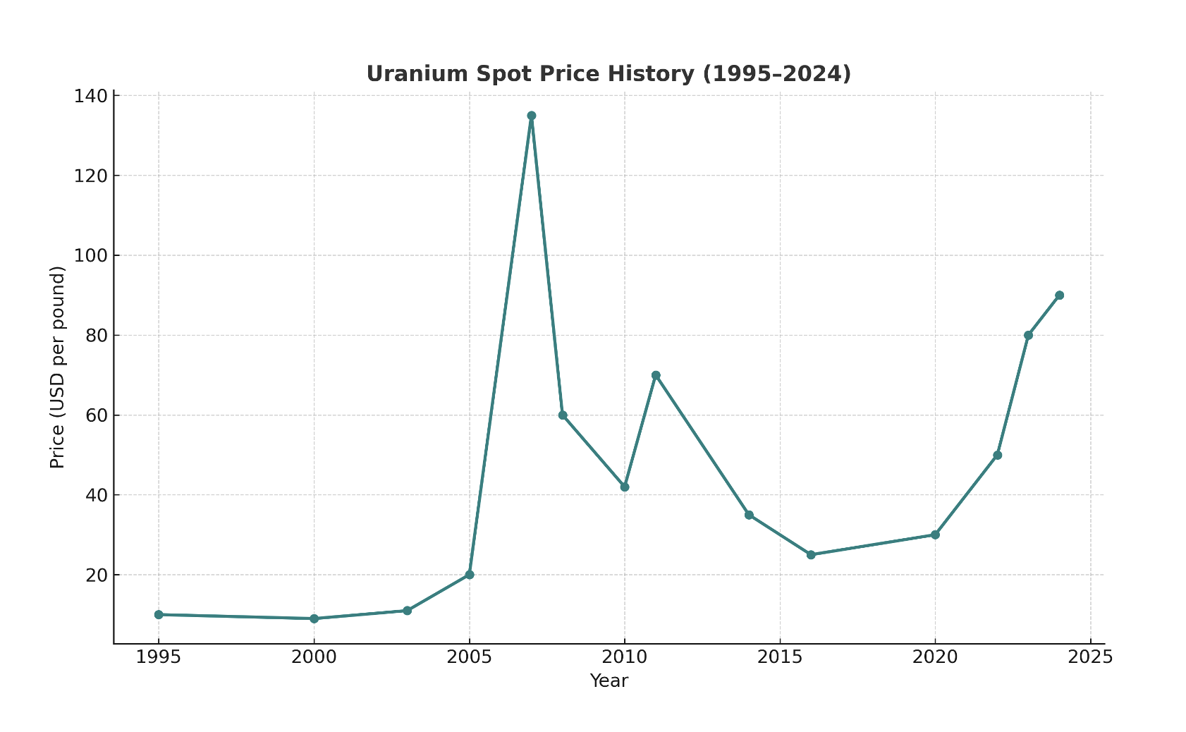 Өнөөдөр ураны эрэлт дэлхий даяар өсөн нэмэгдэж байна. Цөмийн эрчим хүч нь найдвартай цахилгаан үйлдвэрлэлийн суурь бөгөөд хүлэмжийн хийн ялгарлыг бууруулахад чухал хувь нэмэр оруулах бага нүүрстөрөгчийн шийдэл гэж үзэх боллоо. Ураны (U₃O₈, “шар нунтаг”) үнийн хандлага энэ өөрчлөлтийг тод харуулж байна. 2023 онд ураны үнэ фунт тутамд 106.6 ам.долларт хүрч, сүүлийн 16 жилийн хамгийн өндөр түвшинд хүрсэн ч жилийн эцэст ойролцоогоор 86.2 ам.доллар болж буурсан. 2025 оны дунд үе гэхэд үнэ фунт тутамд 68.0 ам.долларын орчим хэлбэлзэж, урт хугацааны гэрээний үнэ 92.6 ам.долларт хүрчээ. Баяжуулсан ураны зах зээл мөн адил огцом чангарч, нэг салгах ажлын нэгжийн (SWU) үнэ 190 ам.долларт хүрсэн нь цөмийн эрчим хүчний өргөжилт болон хиймэл оюун ухаанд суурилсан эрчим хүчний хэрэглээ нэмэгдэж буйтай холбоотой юм.