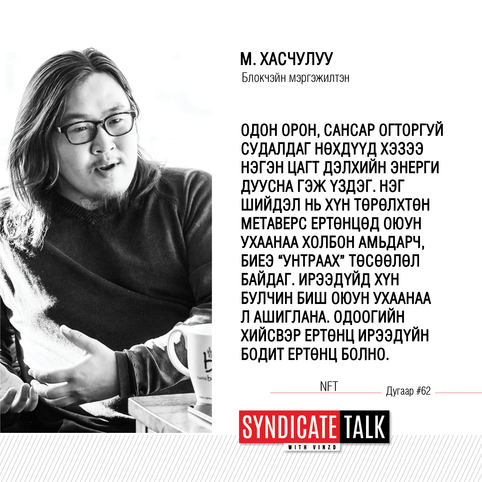 NFT, блокчэйн, метаверс амьдрал, хийсвэр ба бодит ертөнцийн тухай судлаач, мэргэжилтнүүдтэй ярилцсан шинэ дугаар мульти форматаар танд хүрч байна. Технологийн шийдлийг түүчээлэн хэрэглэж буй эрхмүүдийг урин 62 дахь дугаараа бэлтгэлээ. Зочдоор “Mongol NFT”-г үүсгэн байгуулагч Ө.Үнэнбүрэн, блокчэйн мэргэжилтэн М.Хасчулуу, трэйдэр Б.Эрхэмбаяр, NFT шинжээч О.Алтангэрэл нарыг урьлаа.