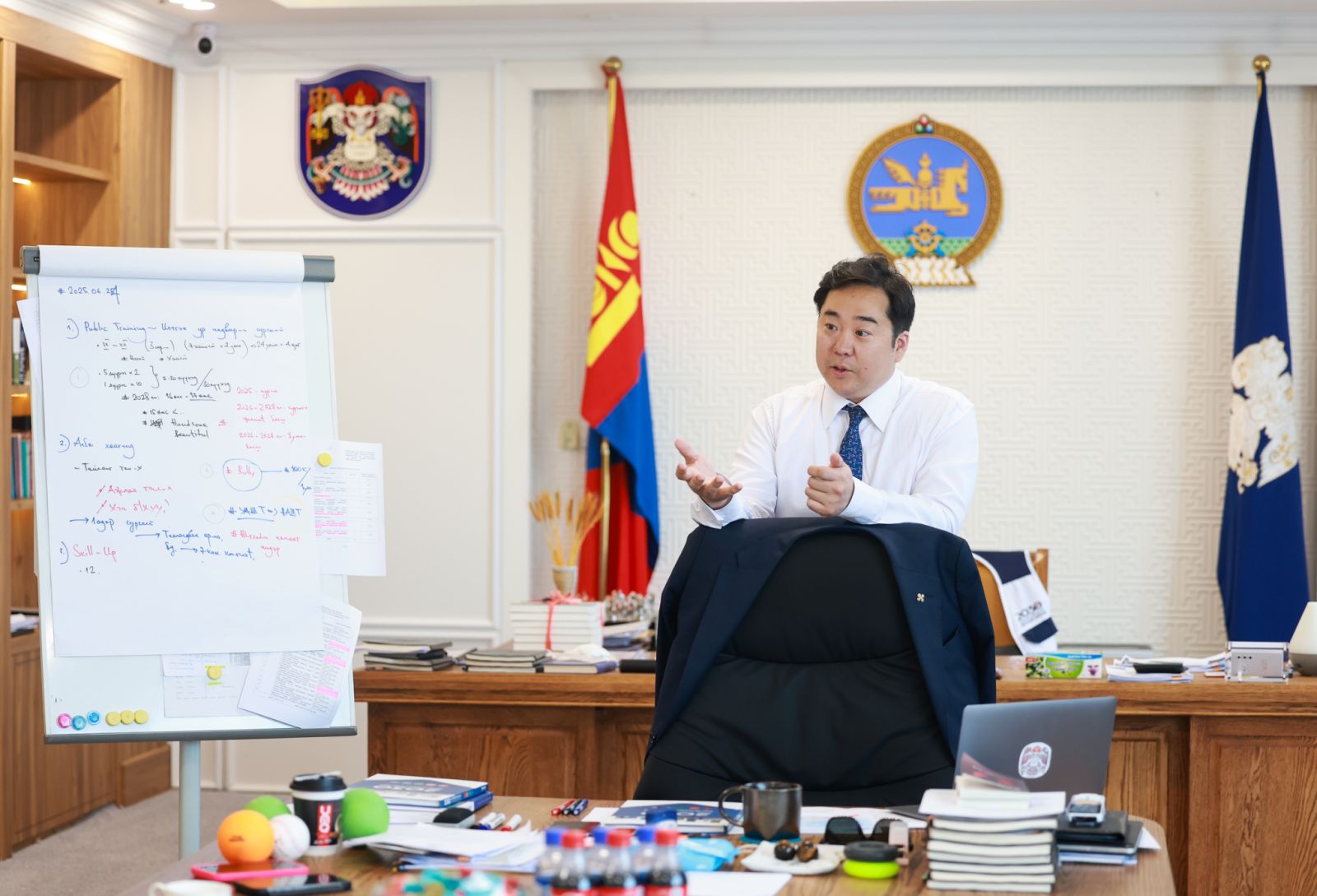 -Ямар ч асуудалгүй ойлголцож ажилладаг.Энэ хүний хувьд үнэхээр Улаанбаатар хотын асуудлаа тодорхой болгоод, шийдлээ томоор харж чадаж байгаа анхны хотын дарга гэж хэлмээр байна. Олон залууст итгэл үзүүлээд ажиллах орон зай,талбарыг нь гаргаж өгч байгаа. Та иргэдийн хурал идэвхтэй ажиллаад байна гэж харснаа хэлсэн. Хотын дарга анх намайг ажлаа авч байх үеэс нээлттэй ярилцсан. Өнөөдөр би есөн том ажлын хэсэг гаргачихсан ажиллаж байна. Улаанбаатар хотын асуудлуудыг шийдэх шийдэл хайгаад,эрэмблээд л хийж эхэлсэн дээ. Ажлаа тэнцүү хувааж аваад, хариуцлагатайгаар хийгээд эхэлсэн. Миний хувьд авто замын түгжрэлийг бууруулах богино болон дунд хугацааны ажлыг хариуцан ажиллаж байна.